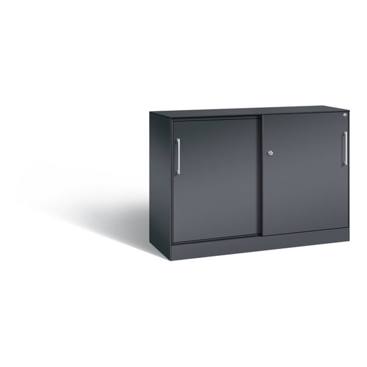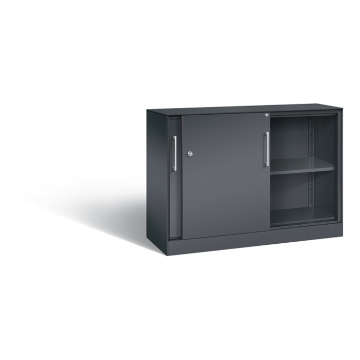 Stahl-Schiebetürenschrank Asisto, Korpus aus stabiler Stahlkonstruktion mit filigraner Kantenoptik und hochwertiger Einbrennbeschichtung für hohe UV-Beständigkeit, mit integrierter Niveauregulierung, bequem von innen bedienbar, hohe Flexibilität der Inneneinrichtung durch Höhenverstellbarkeit im 15 mm Raster, 1 Wechselzylinder matt vernickelt mit 2 Schlüsseln, 2 Ergonomische Design-Bügelgriffe für einfache Bedienung, aus Metall, matt vernickelt, 1 Abdeckplatte aus Stahl, 2 Stahltüren... (mehr)? Papersmart hilft Ihnen, den besten Anbieter für Ihren gesamten Warenkorb zu ermitteln.
