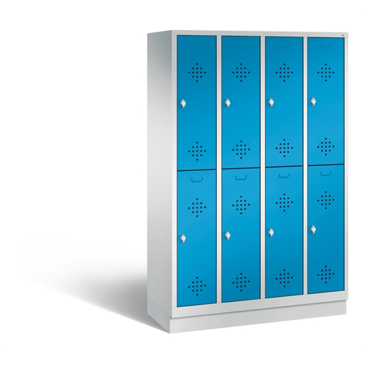 Stahl-Garderobenschrank Evolo, 4 Abteile, Abteilbreite 300 mm, Korpus aus stabiler Stahlkonstruktion mit hochwertiger Einbrennbeschichtung für hohe UV- und Korrosionsbeständigkeit, innen je Abteil 1 Ablageboden, darunter 1 stabile Garderobenstange aus Ovalprofil mit 3 verdrehsicheren Schiebehaken, Schrankboden hinten mit großflächigem Luftdurchlass für optimale Luftzirkulation, auf 100 mm hohem Sockel, mit Kunststoffgleitern als praktischer Schrank- und Fußbodenschutz, vorne... (mehr)? Papersmart hilft Ihnen, den besten Anbieter für Ihren gesamten Warenkorb zu ermitteln.