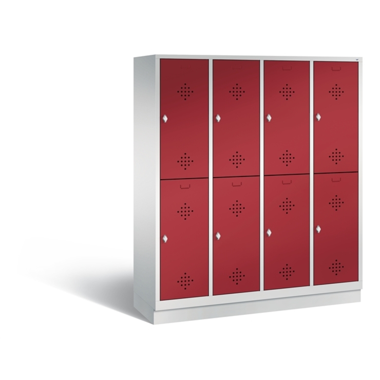 Fächerschrank mit Stahlblech-Sockel, teilverzinkt, 100 mm hoch (Gesamthöhe 1800 mm) • Viele Fächer auf kleinstem Raum Wahlweise mit 3, 4 oder 5 Fächern übereinander bei 1, 2, 3 oder 4 Abteilen nebeneinander. Lichte Fachmaße: B 230xT 465 mm. (B 330 mm auf Anfrage lieferbar.) • Langlebige Stahlblechkonstruktion Erhöhter Korrosionsschutz durch Schrankfüße aus Kunststoff. • Abschließbare Türen Schließung über Zylinderschlösser mit je 2 Schlüsseln. Rechts angeschlagen. Einwandige Ausführung... (mehr)? Papersmart hilft Ihnen, den besten Anbieter für Ihren gesamten Warenkorb zu ermitteln.