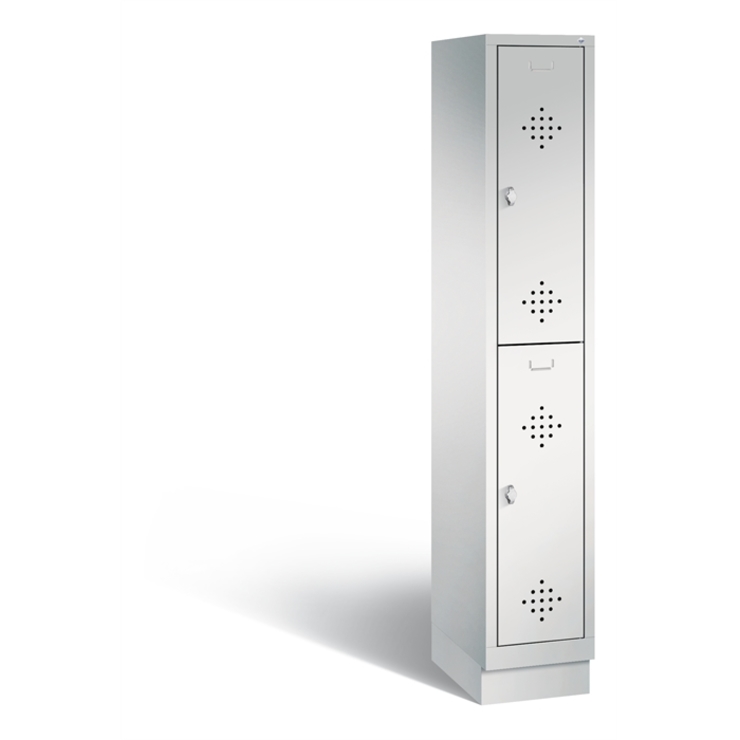 Garderobenschrank Serie Classic mit 100 mm hohem Sockel, Höhe 1800 mm, lichtgrau/enzianblau • Stabile Stahlblechkonstruktion Erhöhter Korrosionsschutz durch Schrankfüße aus Kunststoff. • Klassische Schwarz/weiß-Trennung Getrennte Aufbewahrung von Berufs-/ Privatkleidung. • Praktische Türen Paarweise zueinanderschlagend, mit Anschlagsdämpfer. In Drehbolzen gelagert mit senkrechter Kastenverstärkung. Mit Drehriegelverschluss zur Verwendung eines Vorhängeschlosses, Belüftungskontept CBL,... (mehr)? Papersmart hilft Ihnen, den besten Anbieter für Ihren gesamten Warenkorb zu ermitteln.