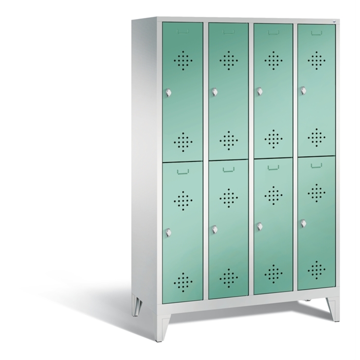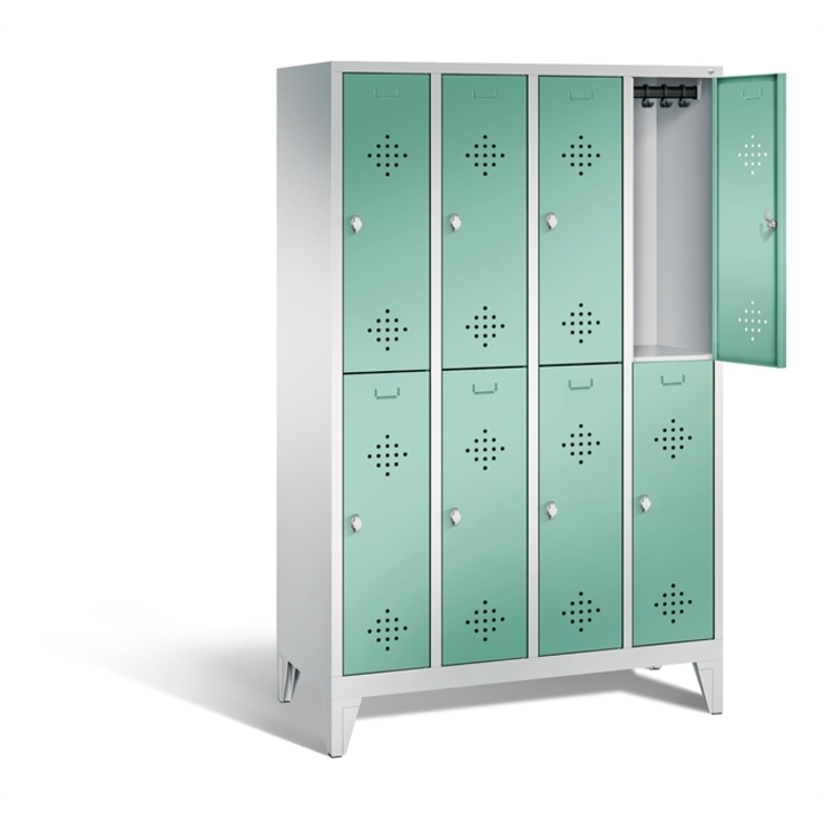 Doppelstöckiger Stahl-Garderobenschrank Classic, 4 Abteile mit je 2 Fächern, Abteilbreite 300 mm, Korpus aus stabiler Stahlkonstruktion mit hochwertiger Einbrennbeschichtung für hohe UV- und Korrosionsbeständigkeit, innen je Fach 1 stabile Garderobenstange aus Ovalprofil mit 3 verdrehsicheren Schiebehaken, auf 150 mm hohen Füßen, aus Kunststoff für optimalen Korrosionsschutz, 8 Drehriegel für Vorhängeschlösser, 8 Türen mit Anschlagsdämpfer und mittiger Verstärkung für hohe Stabilität,... (mehr)? Papersmart hilft Ihnen, den besten Anbieter für Ihren gesamten Warenkorb zu ermitteln.