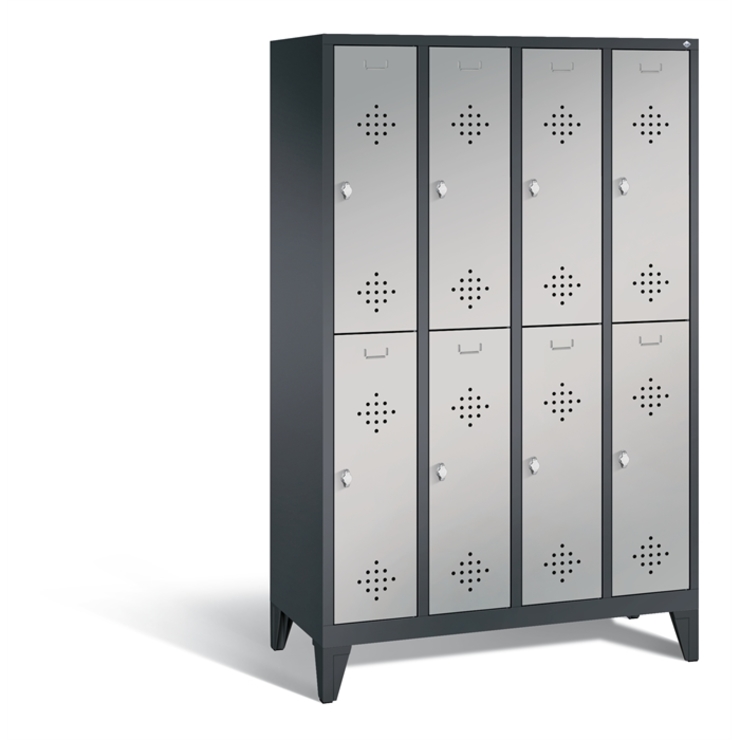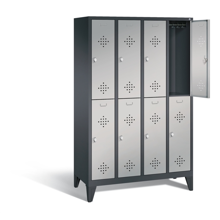 Stahl-Garderobenschrank Classic, 2 Abteile mit 4 Fächern, Abteilbreite 400 mm, Korpus aus stabiler Stahlkonstruktion mit hochwertiger Einbrennbeschichtung für hohe UV- und Korrosionsbeständigkeit, auf 150 mm hohen Füßen aus Kunststoff für erweiterten Korrosionsschutz, 8 Zylinderschlösser mit je 2 Schlüsseln, Schließkreis bis 1000 verschiedene Schließungen, Türen mit Anschlagsdämpfer, Türaufhängung in Drehbolzen, Maße (H x B x T): 1850 x 810 x 500 mm, Korpus: RAL 7035 Lichtgrau, Türen... (mehr)? Papersmart hilft Ihnen, den besten Anbieter für Ihren gesamten Warenkorb zu ermitteln.
