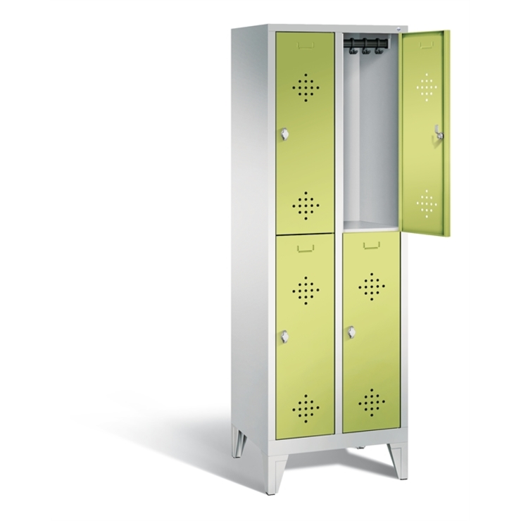 Doppelstöckiger Stahl-Garderobenschrank Evolo, 2 Abteile mit je 2 Fächern, Abteilbreite 300 mm, Korpus aus stabiler Stahlkonstruktion mit hochwertiger Einbrennbeschichtung für hohe UV- und Korrosionsbeständigkeit, innen je Fach 1 stabile Garderobenstange aus Ovalprofil mit 3 verdrehsicheren Schiebehaken, auf 100 mm hohem Sockel, mit Kunststoffgleitern als praktischer Schrank- und Fußbodenschutz, vorne zurückgesetzt, 4 Ergonomische Sicherheits-Drehriegel für Vorhängeschlösser inkl.... (mehr)? Papersmart hilft Ihnen, den besten Anbieter für Ihren gesamten Warenkorb zu ermitteln.