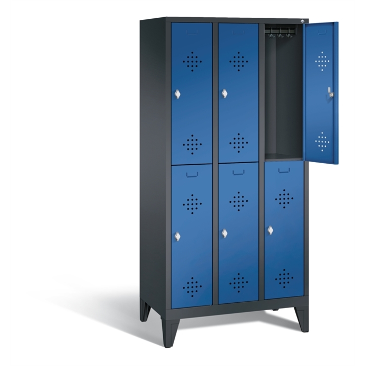Doppelstöckiger Stahl-Garderobenschrank Evolo, 1 Abteil mit 2 Fächern, Abteilbreite 300 mm, Korpus aus stabiler Stahlkonstruktion mit hochwertiger Einbrennbeschichtung für hohe UV- und Korrosionsbeständigkeit, innen je Fach 1 stabile Garderobenstange aus Ovalprofil mit 3 verdrehsicheren Schiebehaken, auf 100 mm hohem Sockel, mit Kunststoffgleitern als praktischer Schrank- und Fußbodenschutz, vorne zurückgesetzt, 2 Ergonomische Sicherheits-Drehriegel für Vorhängeschlösser inkl.... (mehr)? Papersmart hilft Ihnen, den besten Anbieter für Ihren gesamten Warenkorb zu ermitteln.