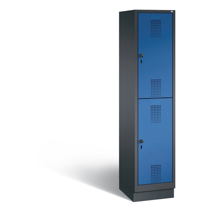 Stahl-Garderobenschrank Evolo, als Straßen- und Berufskleidungsschrank, 2 Abteile für 1 Person, Abteilbreite 300 mm, Türen zueinanderschlagend für gemeinsamen Verschluss, Korpus aus stabiler Stahlkonstruktion mit hochwertiger Einbrennbeschichtung für hohe UV- und Korrosionsbeständigkeit, innen 1 durchgehender Ablageboden, darunter je Abteil 1 stabile Garderobenstange aus Ovalprofil mit 3 verdrehsicheren Schiebehaken, Schrankboden hinten mit großflächigem Luftdurchlass für optimale... (mehr)? Papersmart hilft Ihnen, den besten Anbieter für Ihren gesamten Warenkorb zu ermitteln.