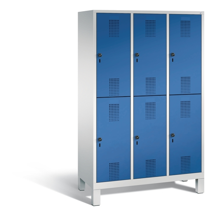 Stahl-Garderobenschrank Evolo, als Straßen- und Berufskleidungsschrank, 2 Abteile für 1 Person, Abteilbreite 300 mm, Türen zueinanderschlagend für gemeinsamen Verschluss, Korpus aus stabiler Stahlkonstruktion mit hochwertiger Einbrennbeschichtung für hohe UV- und Korrosionsbeständigkeit, innen 1 durchgehender Ablageboden, darunter je Abteil 1 stabile Garderobenstange aus Ovalprofil mit 3 verdrehsicheren Schiebehaken, Schrankboden hinten mit großflächigem Luftdurchlass für optimale... (mehr)? Papersmart hilft Ihnen, den besten Anbieter für Ihren gesamten Warenkorb zu ermitteln.