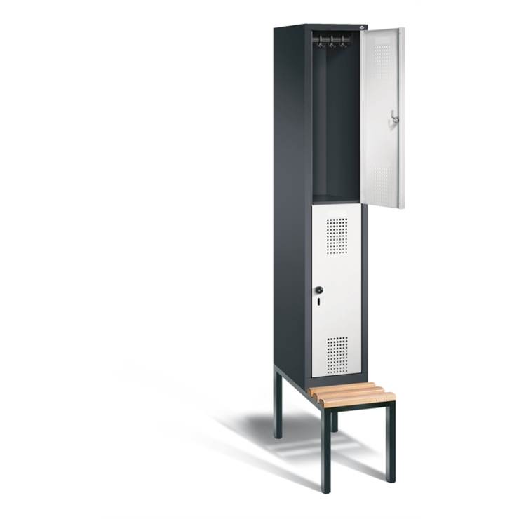 Doppelstöckiger Stahl-Garderobenschrank Evolo, 1 Abteil mit 2 Fächern, Abteilbreite 300 mm, Korpus aus stabiler Stahlkonstruktion mit hochwertiger Einbrennbeschichtung für hohe UV- und Korrosionsbeständigkeit, innen je Fach 1 stabile Garderobenstange aus Ovalprofil mit 3 verdrehsicheren Schiebehaken, auf 100 mm hohem Sockel, mit Kunststoffgleitern als praktischer Schrank- und Fußbodenschutz, vorne zurückgesetzt, 2 Ergonomische Sicherheits-Drehriegel für Vorhängeschlösser inkl.... (mehr)? Papersmart hilft Ihnen, den besten Anbieter für Ihren gesamten Warenkorb zu ermitteln.