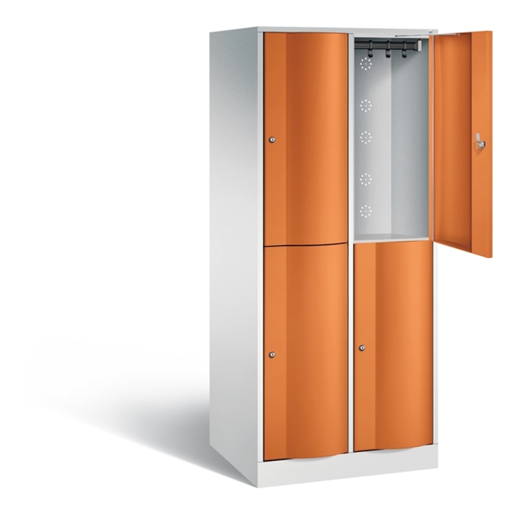 Stahl-Garderobenschrank Evolo, als Straßen- und Berufskleidungsschrank, 2 Abteile für 1 Person, Abteilbreite 300 mm, 1 Tür über 2 Abteile, rechts angeschlagen, Korpus aus stabiler Stahlkonstruktion mit hochwertiger Einbrennbeschichtung für hohe UV- und Korrosionsbeständigkeit, innen je Abteil 1 Ablageboden, darunter 1 stabile Garderobenstange aus Ovalprofil mit 3 verdrehsicheren Schiebehaken, Schrankboden hinten mit großflächigem Luftdurchlass, auf 100 mm hohem Sockel, mit... (mehr)? Papersmart hilft Ihnen, den besten Anbieter für Ihren gesamten Warenkorb zu ermitteln.
