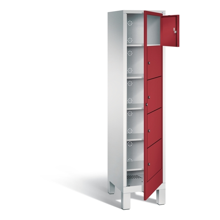 Fächerschrank mit Kunststofffüßen, 150 mm hoch (Gesamthöhe 1850 mm) • Viele Fächer auf kleinstem Raum Wahlweise mit 3, 4 oder 5 Fächern übereinander bei 1, 2, 3 oder 4 Abteilen nebeneinander. Lichte Fachmaße: B 230xT 465 mm. (B 330 mm auf Anfrage lieferbar.) • Langlebige Stahlblechkonstruktion Erhöhter Korrosionsschutz durch Schrankfüße aus Kunststoff. • Abschließbare Türen Schließung über Zylinderschlösser mit je 2 Schlüsseln. Rechts angeschlagen. Einwandige Ausführung mit glatter... (mehr)? Papersmart hilft Ihnen, den besten Anbieter für Ihren gesamten Warenkorb zu ermitteln.