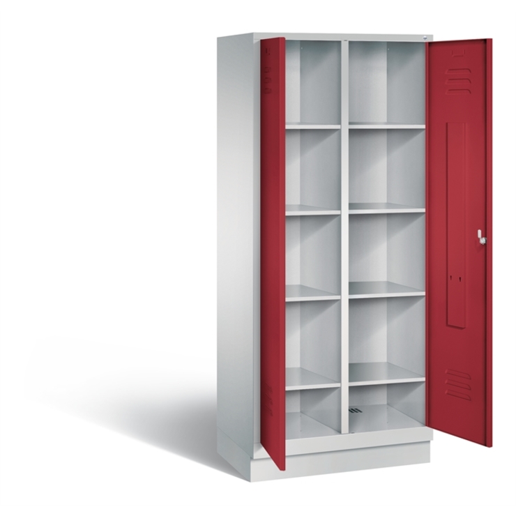 Stahl-Fächerschrank Classic, als Mehrzweckschrank, 2 Abteile, Abteilbreite 400 mm, Korpus aus stabiler Stahlkonstruktion mit hochwertiger Einbrennbeschichtung für hohe UV- und Korrosionsbeständigkeit, innen 4 fest eingebaute Einlegeböden je Abteil, Schrankboden hinten mit Lüftungsöffnungen für optimale Luftzirkulation, auf 100 mm hohem Sockel, mit Kunststoffgleitern als praktischer Schrank- und Fußbodenschutz, vorne zurückgesetzt und oberhalb mit Luftdurchlass, 2 Drehriegel für... (mehr)? Papersmart hilft Ihnen, den besten Anbieter für Ihren gesamten Warenkorb zu ermitteln.