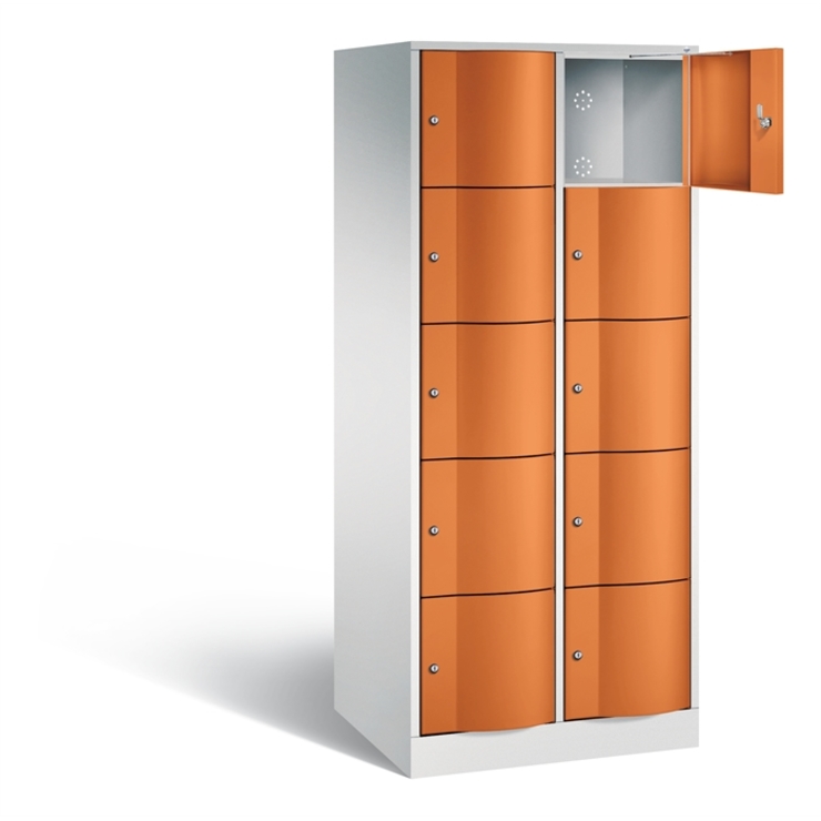Stahl-Schließfachschrank Resisto, XL, 2 Abteile mit je 5 Fächern, Korpus aus stabiler Stahlkonstruktion mit hochwertiger Einbrennbeschichtung für hohe UV- und Korrosionsbeständigkeit, Spezialtüren aus 1,5 mm Stahl, mit Wölbung nach vorne, absolut stabil und vandalismussicher, mit Anschlagsdämpfer, Türaufhängung durchgängig mit robustem Drehstangen- Scharnier, rechts angeschlagen, Rückwand mit großflächigem Luftdurchlass und 18 mm Wandabstandshaltern, auf 100 mm hohem Sockel mit 30 mm... (mehr)? Papersmart hilft Ihnen, den besten Anbieter für Ihren gesamten Warenkorb zu ermitteln.