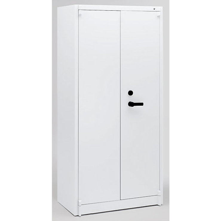Anzahl Fachböden: 3 Stück, Breite: 930 mm, Fachanzahl: 1 Stück, Fachbodenfarbe: lichtgrau RAL 7035, Fachbreite: 758 mm, Fachhöhe: 335 mm, Fachtiefe: 400 mm, Gewicht: 125 kg, Höhenverstellraster Böden: 15 mm, Höhe: 1950 mm, Innenausstattung: 3 verstellbare Fachböden und 1 Schließfach, Innenbreite: 878 mm, Innenhöhe: 1810 mm, Innentiefe: 429 mm, Korpusmaterial: Stahl, Preiseinheit: Stück, Tiefe: 500 mm, Türart: Flügeltüren, Türfarbe: lichtgrau RAL 7035, Türmaterial: Stahl, Verschlussart: Doppelbartsicherheitsschloss mit 2 Schlüsseln, Höhe: 1950 mm, Tiefe: 500 mm, Breite: 930 mm, Gewicht: 125000 g, Fachbreite: 758 mm, Innenbreite: 878 mm, Anzahl Fachböden: 3, Mindestbestellmenge: 1, Fachtiefe: 400 mm, Innenhöhe: 1810 mm, Fachbodenhöhe: 335 mm, Höhenverstellraster Boden: 15 mm, fahrbar: Nein, Türart: Flügeltüren, Korpusfarbe: lichtgrau RAL 7035, Verschlussart: Doppelbartschloss mit 2 Schlüsseln, Fachbodenfarbe: grau, Innenausstattung: 3 verstellbare Fachböden und 1 Schließfach, Verschließbarkeit: Nein, Preiseinheit: Stück, Türmaterial: Stahl, Korpusmaterial: Stahl, Utensilienschub: Nein, Einzelauszugssperre: Nein, ausziehbare Mausplatte: Nein, Beschriftungsmöglichkeit: NeinDoppelwandige Ausführung. Zwischen den Wandungen 25 mm starke Spezial-Isolierplatten nach Klasse A1 gemäß DIN 4102. Schutz vor leichten Bränden und Einbruchsversuchen. Türen mit je 3 Sicherungsbolzen in die Seitenwände einrastend. Bolzenriegelwerk – riegelt nach unten und oben je einmal, seitlich dreimal. Doppelbart-Sicherheitsschloss inkl. 2 Schlüssel. Fachböden im 15-mm-Raster höhenverstellbar. 3 verstellbare Fachböden und 1 Schließfach, zweiflügelig