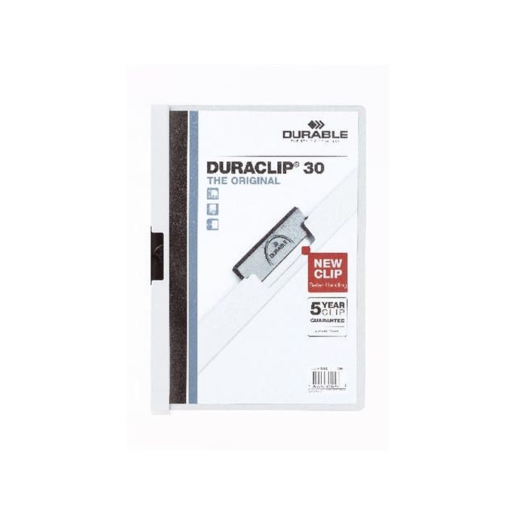 DURABLE Klemm-Mappe DURACLIP® Original 30, Hartfolie, bis 30 Blatt, transparent / weiß
