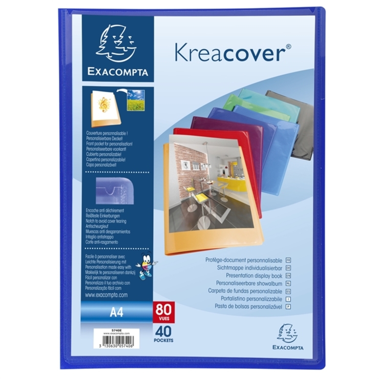 Exacompta Sichtmappe Kreacover® Blickdicht, DIN A4, 40 Hüllen, 7 Farben sortiert