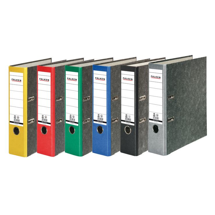 Falken Ordner S80 Recycling, 80mm breit, DIN A4, Wolkenmarmor, Rücken Farbe rot