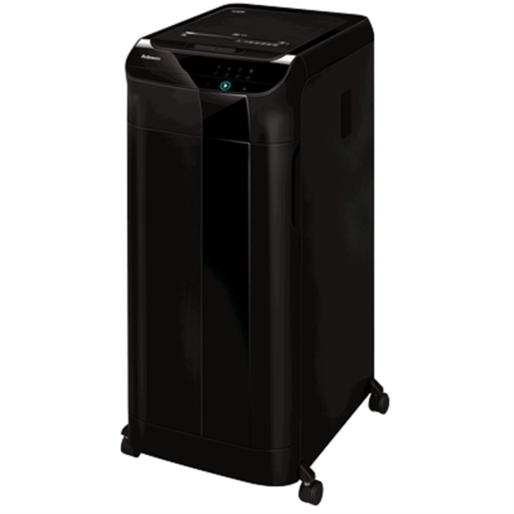 Fellowes® Aktenvernichter, AutoMax™ 550C, Partikelschnitt, 4 x 38 mm, Sicherheitsstufe: P-4, für: Papier/Heft-/Büroklammern/CDs/Kreditkarten, herausnehmbarer Papierkorb, 508 x 660,4 x 998,5 mm, schwarz