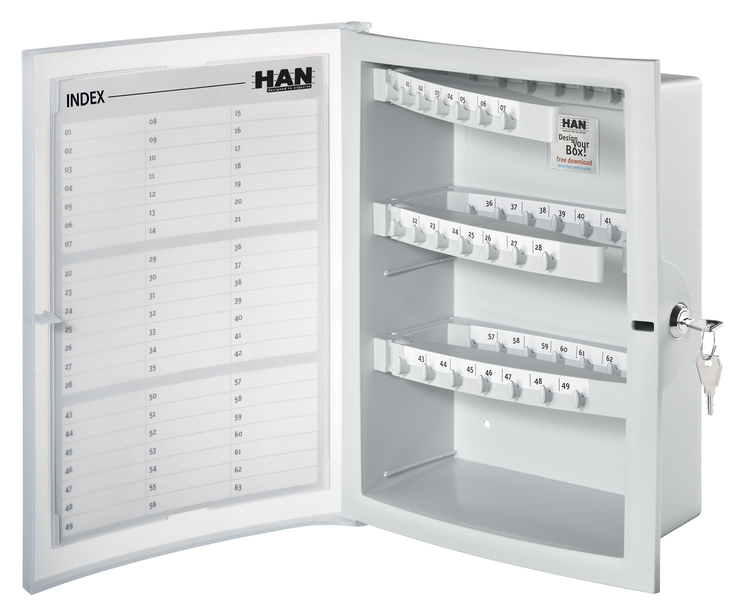 HAN Schlüsselkasten INDEX für 63 Schlüssel, abschließbar, lichtgrau