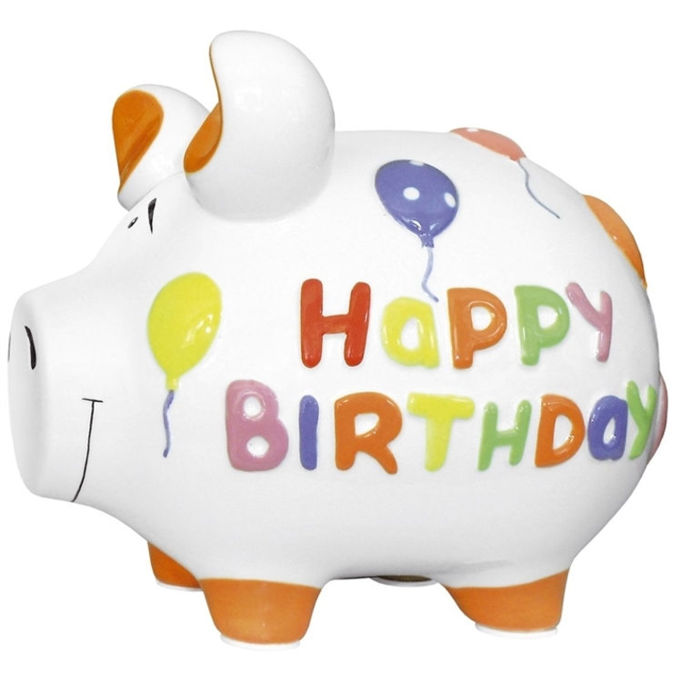 KCG Spardose Schwein "Happy Birthday" - Keramik, mittel