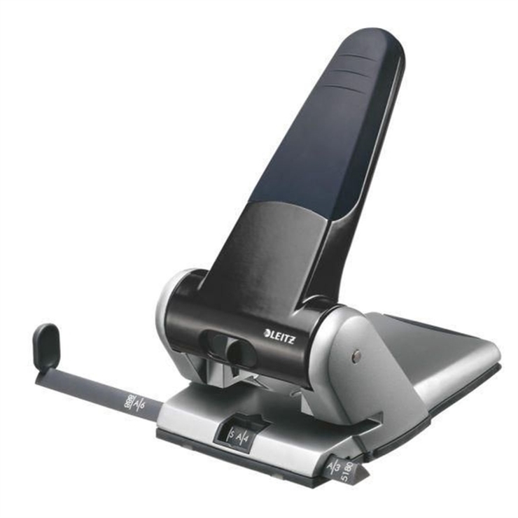 Leitz Extrastarker Registraturlocher · Der Bestseller seiner Klasse! Die Powersave Technologie ermöglicht das mühelose Lochen von dicken Papierstapeln. · 65 Blatt. Müheloses Lochen mit der Powersave Technologie. Für Formate bis A3. · Locht bis zu 65 Blatt (80 g / m² Papier) · Powersave Technologie für müheloses Lochen · Einfach zu lesende und stabile Anschlagschiene, bis Format A3 · Integrierter Griffniederhalter für platzsparende Aufbewahrung · Rutschfester Überzug am Griff gewährleistet einen guten Halt beim Lochen · Einfach zu entleerender, aufklappbarer Abfallkasten · 10 Jahre Garantie, GS geprüft ·