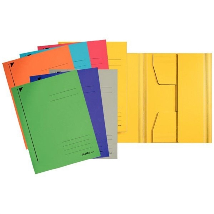 Leitz Jurismappe · Jurismappe in bunten Farben für die tägliche Ablage von Unterlagen. Schnelle und einfache Lösung zur Ablage und zum Transport von Dokumenten im Büro oder unterwegs. Mit seitlichen Schutzklappen für eine sichere Aufbewahrung des Inhalts. · Karton in Recyclingqualität. Blauer Engel. A4. Sortiert. · 3 vollflächig verklebte Klappen am Rückdeckel für einen sicheren Halt der Unterlagen · Falzungen an den Klappen für eine individuelle Einstellung auf die Inahltsmenge · Mit Beschriftungslinien auf dem Vorderdeckel · Hochwertiger, stabiler Karton für eine lange Lebensdauer · Für Format A4 · Für bis zu 250 Blatt (80 g / m²) · Hergestellt aus 100% Recycling Pendarec Karton (430 g / m²), Blauer Engel ·