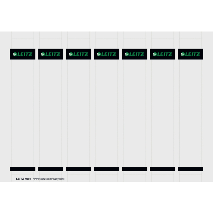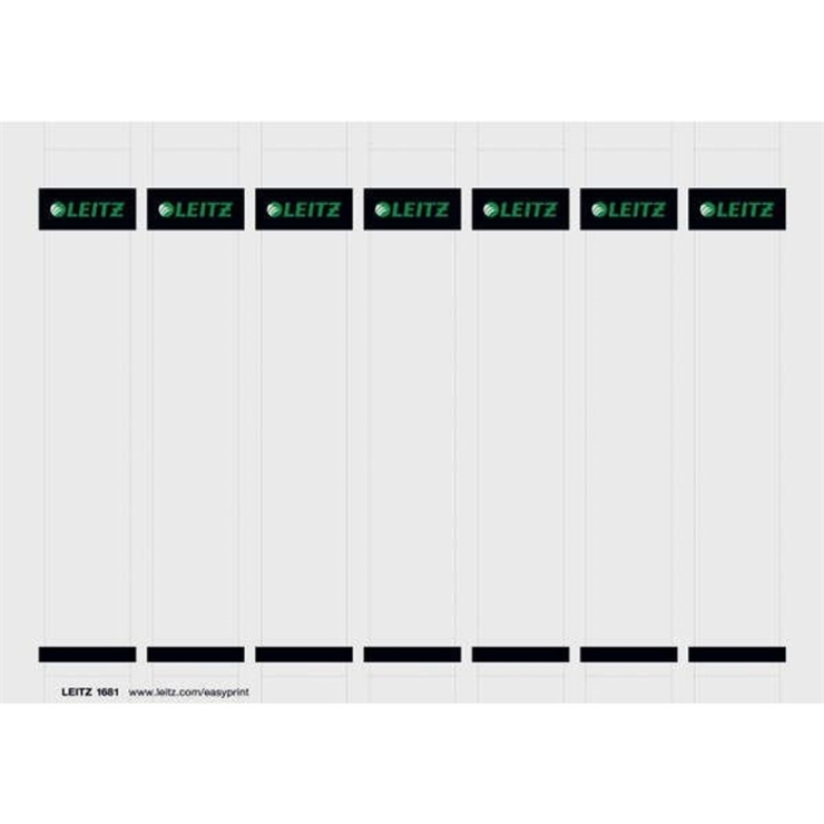 Leitz PC-beschriftbare Rückenschilder für Leitz Qualitäts-Ordner 180° Plastik · Die PC-beschriftbaren Rückenschilder sorgen für eine übersichtliche Organisation im Regal oder im Archiv. Mit dem nutzerfreundlichen und webbasierten Programm "Easyprint" lassen sich die Rückenschilder nach individuellen Bedürfnissen schnell und einfach gestalten und ausdrucken. · Kartonrückenschilder für Leitz Ordner 1015. Kurz, schmal. · PC-beschriftbare Rückenschilder für eine schnelle und einfache Organisation von Ordnern · Geeignet für Tintenstrahldrucker, Laserdrucker und Kopierer · Kurzes, schmales Kartonrückenschild zum einfachen Einstecken in Rückenschild-Tasche · Auf A4 Karton mit Perforation zum einfachen Heraustrennen · Für Leitz Qualitäts-Ordner 180° Plastik 1015 und sonstige Plastik-Ordner mit Rückenschild-Tasche · Gestalten und Drucken Sie Ihre Rückenschilder über www.leitz-easyprint.com · Verpackungseinheit 1 Pack = 25 Blatt A4 (7 ST je Blatt = 175 ST) ·