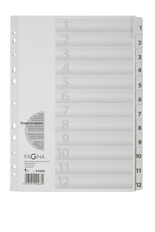 Register. für A4. 12-teilig. weiß. aus Karton. Tabe und Universallochung mit Polyester-Folie verstärkt. mit beschriftbarem Deckblatt Tabe 1-12.