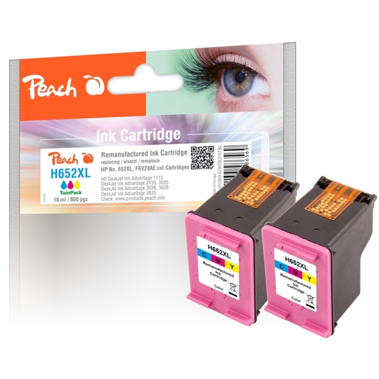 Peach Doppelpack Druckköpfe color kompatibel zu HP No. 652XL, F6V24AE
