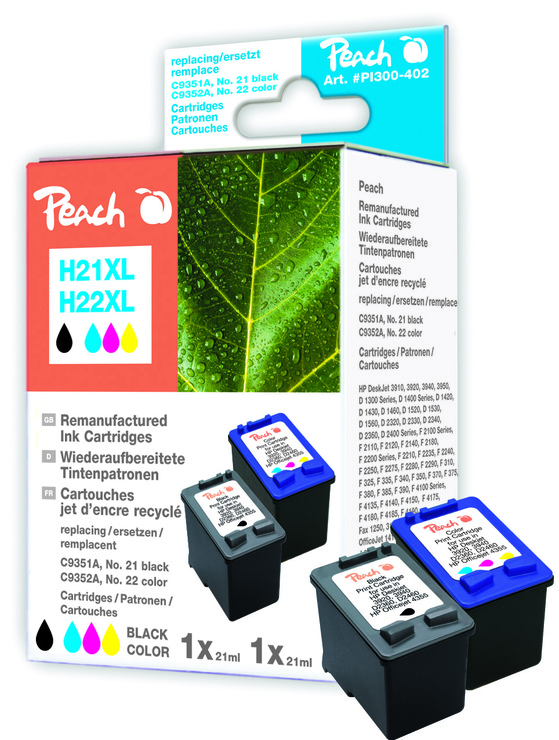 Peach Spar Pack Druckköpfe kompatibel zu HP No. 21XL, C9351AE, No. 22XL, C9352AE
