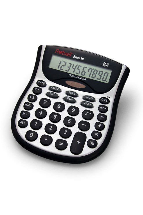 Rebell Tischrechner Ergo 10,3-Tasten Speicher, 10 Stellen, 130x153x35mm, schwarz / silber