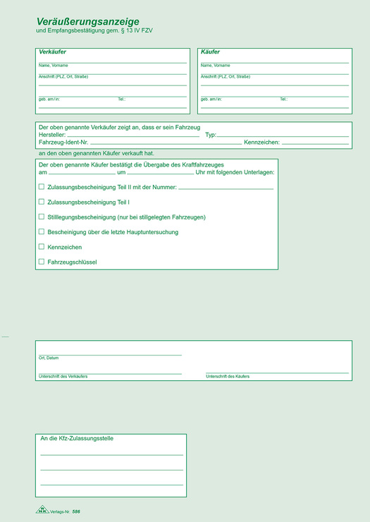 RNK Kaufvertrag für ein gebrauchtes Kraftfahrzeug - 10 Stück, SD, DIN A4, 6 Blatt