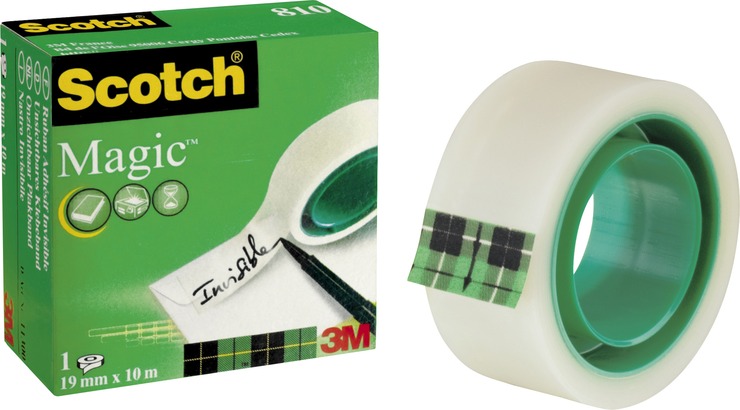 Scotch® Klebeband Magic 810, Zellulose Acetat, unsichtbar, beschriftbar, 10 m x 19 mm