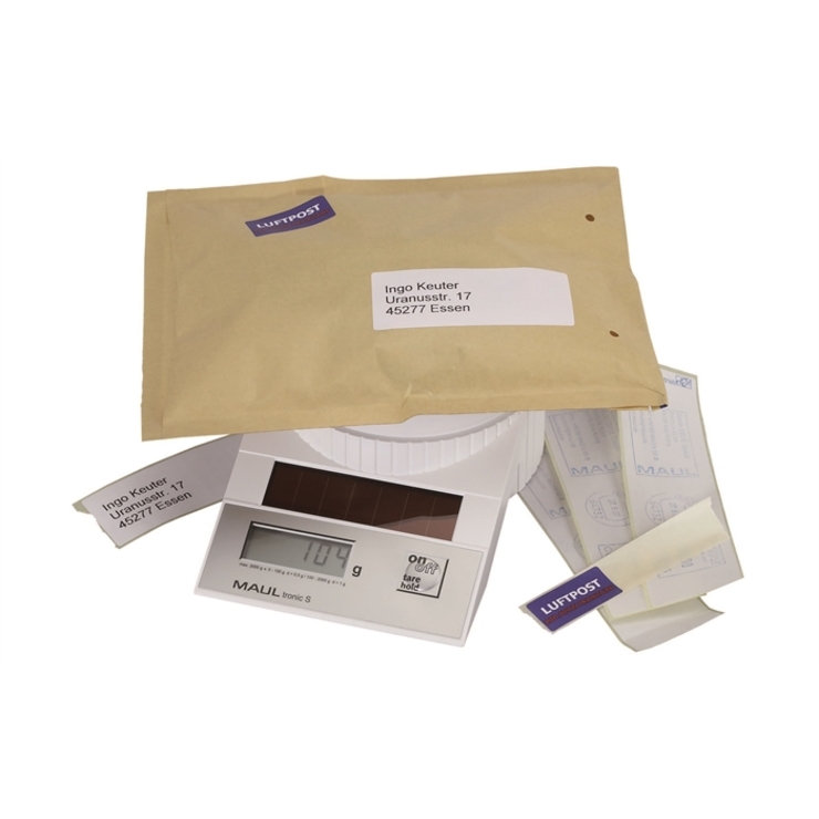 Solar-Briefwaage MAULtronic S, 2000 g, 0,5 g; 1 g, 130 x 65 x 196 mm, weiß