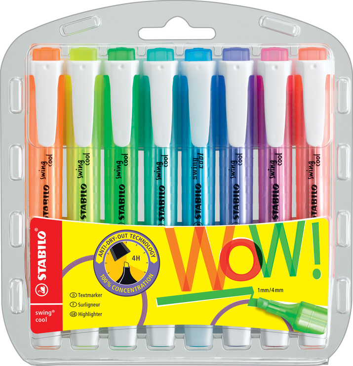 Textmarker STABILO® swing® cool, Etui mit 8 Stiften