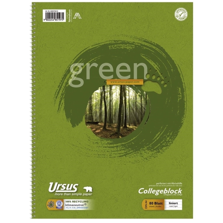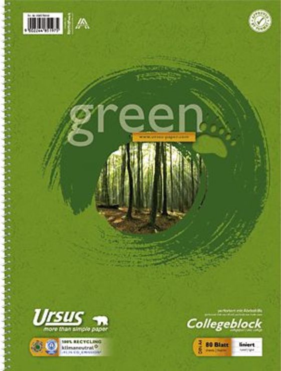 URSUS Collegeblock 80 Blatt, m.Umweltengel/608570010, liniert 21, 70g/qm, DIN A4